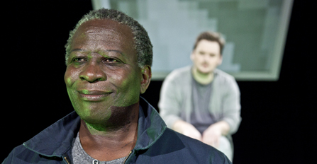 Det börjar med att de noterar varandra, upptäcker att den andre stirrar tillbaka från andra sidan rummet. Först är det oklart om det handlar om en slags attraktion, men snart står det klart att den vithyade mannen (Jonas Hellman-Driessen) har fångats i den färgade mannens (Richard Sseruwagi) blickfång av helt andra orsaker: Bland alla människor i den välbefolkade vänthallen har just det vita ansiktet valts ut för en identitetskontroll. REVA-projektets inre gränskontroll alltså – fast, så att säga, tvärtom.