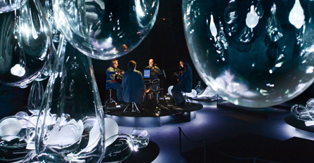 Rummet är skapat just för Different Trains. Det är därför som urspårningen blir så fatal när föreställningen övergår i Fläskkvartettens egen komposition Tears Apart. Musikerna stiger av podiet, rör sig ut bland glasbehållarna. Spelar på dem – litet för länge. Vidare ett rytmiskt mantra, drones, en vemodig melodi och sen, krasch – ljudet av krossat glas och en hårt riffande elektrifierad stråkkvartett. Tågbilderna har förbytts i ett flummigt kalejdoskop som tecknar en Davidsstjärna …