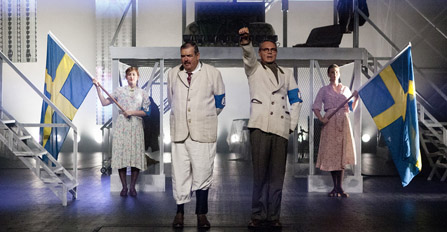 Grundtemat, ondskans gemenhet kontra enfaldens godhet, är så starkt att det tränger igenom även produktionsteamets väldiga teatermaskineri. Men varför upphovspersonen själv ska förekomma i rollgestalt på scen, tillsammans med sin ständige partner, är för mig fullkomligt poänglöst. Hela föreställningen inleds med ett gammalt Hasse & Tage-nummer, en Lindeman, och sedan återkommer kabaréinslag med paret på de mest omotiverade ställen genom hela iscensättningen. Behållningen är Erik Borgekes gestaltning av Sven. Visserligen åstadkommer han den genom att imitera Stellan Skarsgårds filmtolkning, men han gör det bra. Ester Claesson väljer en annan väg som den rullstolsburna Maria. Hon skapar en egen gestalt, full av spetsigt exakt repliknärvaro.