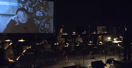 Om den audiovisuella upplevelsen fylls av associativa, textliga brottstycken (även förinspelade), gutturala läten och glissandon – mitt ibland vackert klingande vokal- och stråkpartier – så förekommer mer tydliga berättarelement i de bildmässiga inslagen: Filmade sekvenser varvas med livescener – skådespelarna agerar då och då på en liten upplyst plats på scenen medan ett par kameror fångar skeendet och visar det på filmduken.