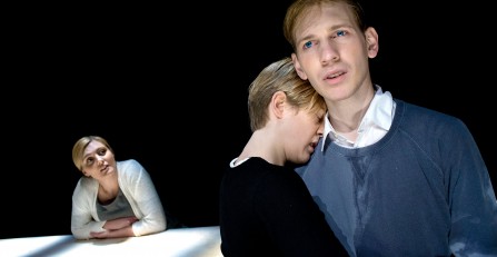 Men Hallbergs text har något mjukare över sig, är inte lika hårt vriden åt det absurda. Dess mer psykologiserande drag tillhör dock inte alltid dess styrkor – bakgrundsberättelsen om relationen mellan mannen och hans mamma blir lite av ett eget spår. Något som både binder ihop och lättar upp är att Malin Persson och Moa Silén, utöver sina roller som barnet och K:s mamma, också alternerar som ett slags metakommenterande inre dialog-röster.