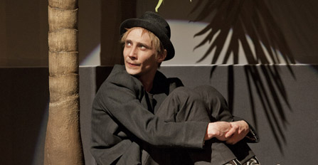 Han låter pjäsen Akt utan ord utgöra prolog, där den stumma, enda rollen kan tolkas som en yngre pantomimversion av Krapp (logiskt eftersom Krapp sedan kommer att föra ett slags dialog med sig själv i tidigare skeenden i livet). Allt mer geniale Michael Jonsson får ge prov på sina fysiska färdigheter i akten som Beckett skrev för dansaren och koreografen Deryk Mendel 1956, en tragisk solskenshistoria – där solen är mördande het i tillvarons öken.
