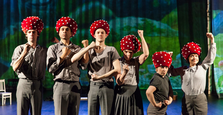Ann-Sofi Nyströms scenografi och kostym samt Sutodas projektioner placerar oss med förhållandevis enkla medel i blåbärsskogar och vinterlandskap. Det är charmigt, rörande, knappast en föreställning gjord av något blåbär på området – om uttrycket ursäktas. Men i min smak blir resultatet ändå aningen lojt och spretigt. Trots flugsvampshattarna blir det aldrig riktigt giftigt. Sexåringen vid min sida verkar inte hålla med. Han ler förnöjsamt föreställningen igenom och känner igen sig.