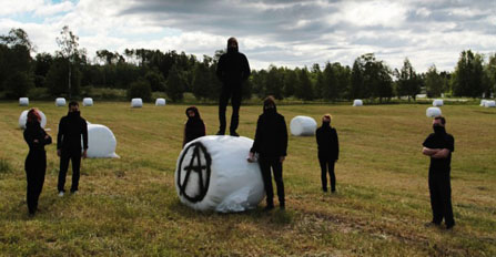 De blåvitrandiga på scen vill paketera och sälja revolutionen som en ytlighet för att lugna folket utanför: Alla får bränna en bil tre gånger om året! Kast med gatsten görs till en sport! Bombtillverkning klassas som hantverk! Men när folket slutligen hotfullt bankar på dörren och vill in, ja, då åker motorsågen fram.