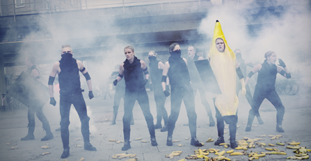 Och nog är det plågsamt när Nils Poletti går i närstrid. Var och en i ensemblen nedstiger i de rasistiska djupen, klunkar i sig och sprutar ut. David Sigfridsson är maskerad och slätsminkad till en arisk dröm. Blond, muskulös – som hämtad från en målning av Eugene Jansson – och med en mekaniserad plastik, citerar han Skånepartiets reklamutskick. David Sigfridsson är föreställningens nav. Eller ska jag säga führer. Tanne Uddéns koreografi, både vad det gäller enskildheter som i de många och, bokstavligt talat, fruktansvärt effektfulla ensemblescenerna, är i högsta grad medberättande. Individen reducerad till maskin. Ibland glipar rustningen som i scenen av homoerotiskt längtande dans vilken destrueras i Hitlerhälsning.