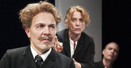 Det börjar bra i Sundsvalls 1890-talsteaters foajé, med Åke Arvidsson som en porträttlik August Strindberg på en trappavsats ovanför publikens huvuden. På den motsatta sidan står Gisela Nilsson, en minst lika porträttlik Siri von Essen. De presenterar sig och spelet kan börja.