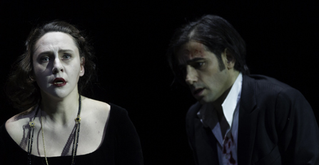 Vissa grepp återkommer ofta i Göteborgsoperans uppsättningar – ett sterilt grått fyrkantigt scenrum och en drös herrar i anonyma svarta kostymer. Jag antar att det är tänkt att ”bryta mot operakonventionen”, men nu har det upprepats så många gånger att det har blivit en konvention i sig. Här bjuds vi alltså inte på några venetianska gondoler eller praktfull 1500-talssammet. Istället är det en avskalad teater i teatern, med bara några pinnstolar som rekvisita. Ibland fungerar konceptet bra, som när scenen plötsligt fylls av klonade hantverkare med blåställ och svarta mustascher eller när Borgias man Don Alfonso (Mats Persson), förgäves försöker jaga strålkastarljuset under sin hämndaria. Men ibland blir det bara plumpt, som när en kör i tokroliga kläder dyker upp och kvaddar Borgias självmordsaria.