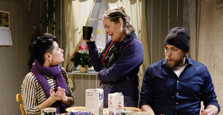 Alla känslor kring vargfrågan exploderar i det trånga köket. Kvinnorna tar striden. Perka drar bokstavligen både mössa och köksstolar över huvudet för att slippa höra och slippa ta ställning. Han skär sig på potatisskalaren och bullrar omkring som kunde han driva bort alla svåra samtalsämnen med sin kropp. Först när det som bränt mellan honom och Sol-Britt i många år blir sagt tycks han landa i ett lugn. Ja, bekräftar han äntligen, han tycker att hans pappa svek när Sol-Britt blev övergiven.