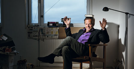 Krister Henriksson har för närvarande ingen bokhylla. Däremot har han, vägg i vägg med sin bostad på Södermalm i Stockholm, köpt en enrummare att inreda som bibliotek. Lägenheten är ännu en byggarbetsplats, böckerna står i källaren. Hur många de är vet han inte.