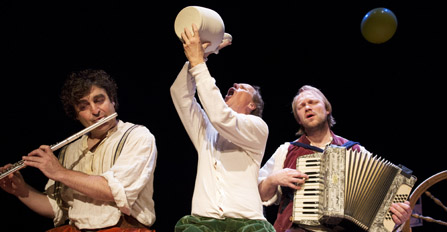 Det börjar med Victoria Olmarker och Per Sandberg i en frustande dialog som häst respektive åsna. De två klassiska krakarna måste så klart vara med, men i efter öppningsgnabbet blir det upp till publiken att föreställa sig djurens lunkande siluetter. Så kliver mannen som tycks född för att spela don Quijote in på scen: Thomas Nystedt. Han har den gängliga fysiken, den skolade rösten och en komisk nerv som tillsammans skriker Sorglig Riddare.