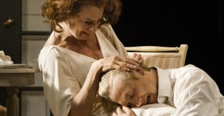 Hennes plågade son Konstantin, fint gestaltad av Christoffer Svensson, ges här mer sympati än löjesskimmer i sina ungdomligt passionerade försök att förnya teaterkonsten. Regin liksom lyfter upp honom, verkar känna med honom. Omfamningen i andra akten rymmer kanske hopp om försoning ändå? Då slår mörkret till – det ömma ögonblicket slår över i desperata incestuösa gester. Konstantin försöker kyssa sin mamma och sedan i fosterställning närmast pressa sitt huvud in i hennes underliv. Ekblads ansikte förvrids i äckel och smärta, kanske skuld. Det är en stark scen med fint fysiskt spel och en svart tolkning av deras skadade relation, som också står för pjäsens stora konflikt mellan det gamla och det nya.