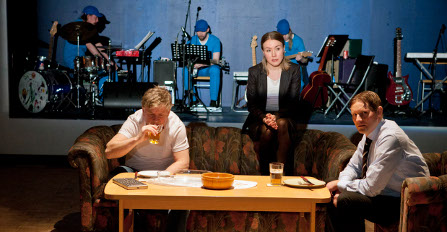 Du som såg Andreas Boonstras och Stefan Sundströms livemusikpjäs Ön (läs Nummers recension) på Stockholms stadsteater 2010 känner igen den Sverigeallegoriska miljön med de vita Billybokhyllorna (Fridjon Rafnsson är scenograf även här), den politiska musikalformen och vissa av rollfigurerna. Kris zoomar in en av de där egenföretagarpapporna som ”jobbar och gör rätt för sig”, granne med både den Sundströmkarikerade rockstjärnan Johnny Dunder och den slirige oberoende debattör-entreprenören Svanhagen (de två senare här spelade av regissören själv). Och därmed zoomar den in på smygrasismen som missnöjesväxer i den europeiska krisens skugga.