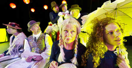 Till formen påminner Mittens rike om en kabaré. Ibland med lite skolexamensvarning. Kollektivt skapad med Richard Turpin som regissör. Sju individer klädda i överlevnadsoveraller, lätt kamouflerade av hattar, peruker och andra markeringar av anno dazumal, bidar sin utmätta tid under ängsligt undergångsprat. Det är klimatsmart att dö, men vem vill ge upp så lätt? Sifferexercisen gror ihop till rena rotvälskan, inte utan poänger.
