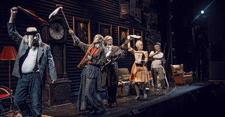 Ganska snart börjar dock ledtrådarna till den Gedeonska särarten krypa fram. Som när den präktiga sjuksköterskan tvingar sin håglösa panterförsamling att sjunga käcka barnsånger i seniorversion. För att kompensera sin frustration, river de sedan av en svensk version av paradnumret Life ur i musikalen Hair. Teaterns leading man Frederik Nilsson visar sig ha en pålitlig röst, och är perfekt som gubbhippie i det första av en rad feta nummer som snart följer.