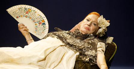 Riktigt fin metafor är också Lars Östberghs scenografi med spelplatsen som en liten flotte, ensam på ett stort vatten. Livet som en öde ö. Ensamma står vi där till slut. Ett riktigt Sarah Bernhardt-tänk finns också i Charles Korolys kostym. I första akten äggskalsvit och vidärmad med blinkningar till Bernhardts Pierrotkostymer för att sedan, efter paus, svälla ut i en fulkomligt överstofferad krinolin med pärlor, spetsar och mängder av gamla fotografier i långa band. Helgalet förstås men helt i linje med Sarah Bernhardts eget modeintresse som inkluderade hatt med stor fladdermus och ormarmband vilka slingrade och rörde sig vid varje rörelse.