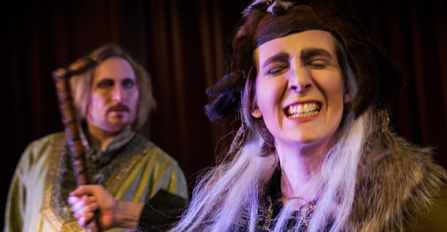 På scenen står en tron formad som aktern på ett vikingaskepp. Kungahallens golv är av sten. På en upphöjning bakom tronen finns musikerna och på sidorna sitter kungens tjänare och skådespelarna när de inte är i spel. Scenen omges av träpålar på vilka djurhuvuden har spetsats.