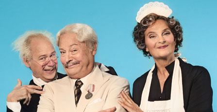Arsenik och gamla spetsar hade premiär på Broadway 1941 – det är med andra ord en klassisk komedi, som nu spelas i en ny version av scenrävarna Eva Rydberg, Björn Kjellman, Marianne Mörck och Birgitta Rydberg.