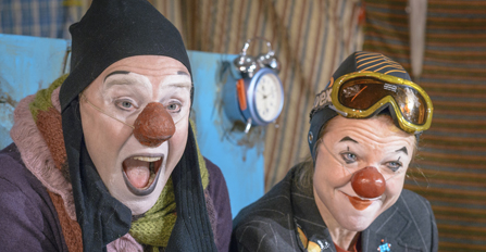 Den fria teatergruppen Dotterbolaget, med så att säga scenen på fickan, har länge arbetat med att utveckla teaterclownformen. De har tidigare slagit ner sina ”tältpinnar” på bland annat Teater Brunnsgatan 4 och Stockholms stadsteater samt gästspelat i Danmark, Tyskland och Irak. Skarpnäck, Tensta, Kärrtorp och Haninge kan vänta sig besök med den här uppsättningen.