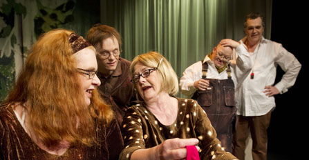 Mellbin spelar en timid men vitaliserande gäst, och pekas i krisen ut som roten till det onda. Ett extremt scenario vars surrealistiska nerv accentueras både av den lätt naturromantiska scenografin, den glättigt pärlande ljudbilden och de yviga gesterna hos Gunilla Ericsson och Pierre Björkman. Deras tolkningar av två halvvuxna, omhuldade och utagerande syskon blir en kontrast till Niclas Lendemars lågmälda minsting Erik. Med små medel kanalserar han sin smärta över en situation bortom den egna kontrollen. I min bok är Eriks resa en föreställning för sig som gärna hade fått ta mer utrymme. Den är så stark, och har en liksom lugnande inverkan på den yviga, lite stressade helhet som regissören Kjell Stjernholm har valt.