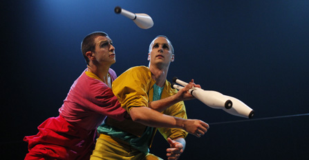Även Kompani Giraffs tilltal är intimt och vänligt. Artisterna är fingerfärdiga och bjussar på ett leende när de någon gång missar. Dramaturgin är enkel, scenerna okonstlade – det är det kamratliga samspelet, de förtroliga blickarna åt sidan som charmar mest.