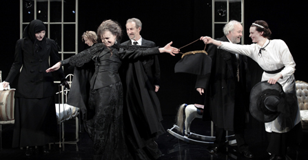 Maria Kulle gör Ranevskaja med lite extra utspel, så den stackars världsfrånvända godsägarinnans smärta ska bli allas och envars. Michalis Koutsogianakis gör Lopachin till en leende clown sockrande sina bittra besked, full av klassresenärens osäkerhet och vädjande inställsamhet. Men hans segertal efter det stora förvärvet låter som en annalkande storm. Fredrik Dolk försöker få ihop den svåra tjechovska blandningen av tragedi och komedi, men lyckas bara med det sistnämnda. Ester Claessons Anja tycks vara på gränsen till nervsammanbrott.