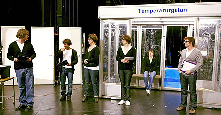 I föreställningen Don Carlos på Dramaten har scenografen och kostymören Bente Lykke Møller kopierat makens och regissören Staffan Valdemar Holms klädsel, kostym och grå skjorta, som får bäras av samtliga skådespelare. Samtidigt vandrar det runt sju kopior av regissören Carolina Frände i En helt god kvinna på Göteborgs stadsteater, en pjäs som egentligen var tänkt att handla om Alva Myrdal.