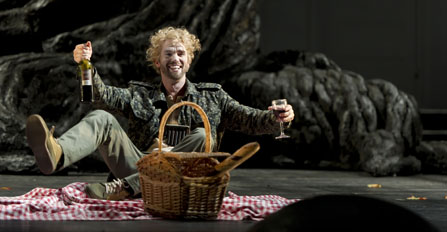 Tamino nickar till på Operans första bänk och återupplever i drömmen ungdomsförälskelsen som ett prövande scoutäventyr, medan tre damer från garderoben nyper honom i örat. Huvudaktörer på resan är ett knippe sångstjärnor som gör minnesvärda debuter på nationalscenen – från Daniel Johanssons Tamino, till Susanna Sterns psykopatiska stumfilmsdrottning och Ida Falk Winlands skolflicksljuva Pamina. Carl Ackerfeldts ornitolog Papageno jagas av brunbjörnar, och vinner publikens hjärta när får sin Papagena (Vivianne Holmberg) efter en närmast fulländad striptease. Om inte dirigenten Stefan Klingele hade stoppat dem… Och tur är väl det, för ibland tar leklusten och de kraftiga strykningarna i dialogen loven av den musikaliska stringensen och allvaret.