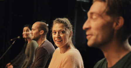 Här finns tjejen på festival som bara vill hångla lite men väljer fel grabb, killen som tappat lusten men ligger med tjejen ändå och killen som har sex på ett lakan i soffan eftersom kvart-i-tre-ragget inte vill skita ner sängen. Det är befriande rakt på sak och direkt: Fortsätt #prataomdet tar oss rätt in i sängkammarens mest intima vrå. De olika rösterna från debatten – återberättade av skådespelarna Meliz Karlge, Louise Ryme, Camaron Silverek och Mårten Svedberg – flyter skarvlöst samman i en enda sammanhängande historia om att vilja och inte vilja.